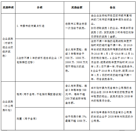 根据《广州市人民政府办公厅关于印发广州市促进总部经济发展暂行办法的通知》(穗府办规〔2018〕9号)要求,对获得总部企业认定并符合奖励条件的企业,按以下要求给予适当奖励补贴。