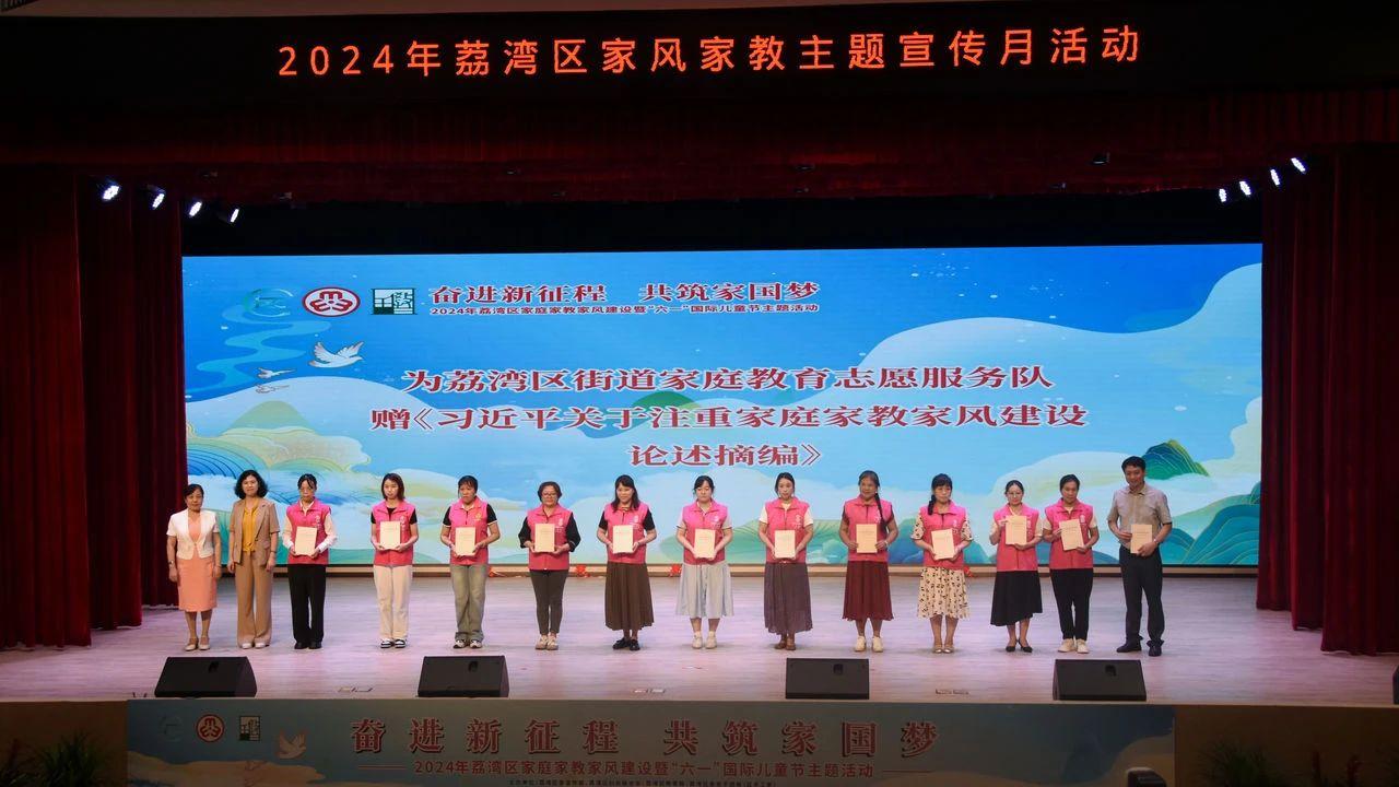 活动充分展现了荔湾区家庭家教家风建设工作成果。当天,主办方特别邀请广州、深圳、香港、澳门等粤港澳大湾区家庭教育专家与现场连线寄语,共商湾区家庭教育合作交流。活动为荔湾区11个重点街道家庭教育志愿服务队赠送书籍《习近平关于注重家庭家教家风建设论述摘编》。同时,为深化校家社协同育人工作机制,广东省中小学主题教育活动“校家社共绘同心圆”活动正式启动,荔湾区教育局与北京师范大学出版集团大有阳光心理平台共建“荔·家相约”——“心”家长学堂直播间,每周以讲师直播的形式,引领家长科学、系统地开展家庭教育工作。