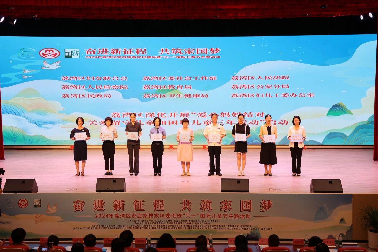 为增进困境儿童福祉、促进其健康成长,荔湾区紧跟上级工作部署,积极汇聚关爱力量,进一步深化困境儿童关爱服务。活动当天,荔湾区妇联、区委社会工作部、区法院、区检察院、区教育局、区公安分局、区民政局、区卫生健康局、区妇儿工委办等九个部门,联合启动荔湾区“爱心妈妈结对关爱留守儿童和困境儿童三年行动”。