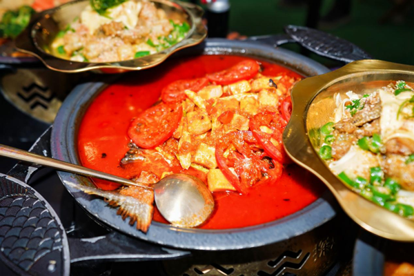 新品中包括了使用香浓紫苏酱和新鲜紫苏叶制成的绝绝紫苏牛蛙烤鱼,以及以新疆日光番茄熬制的酸甜汤底的日光番茄烤鱼。