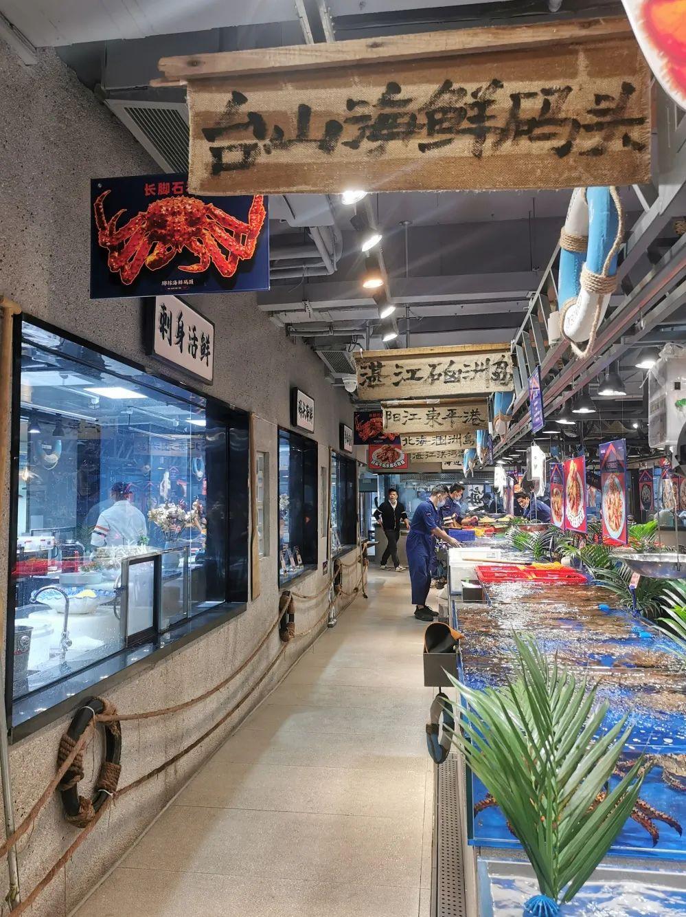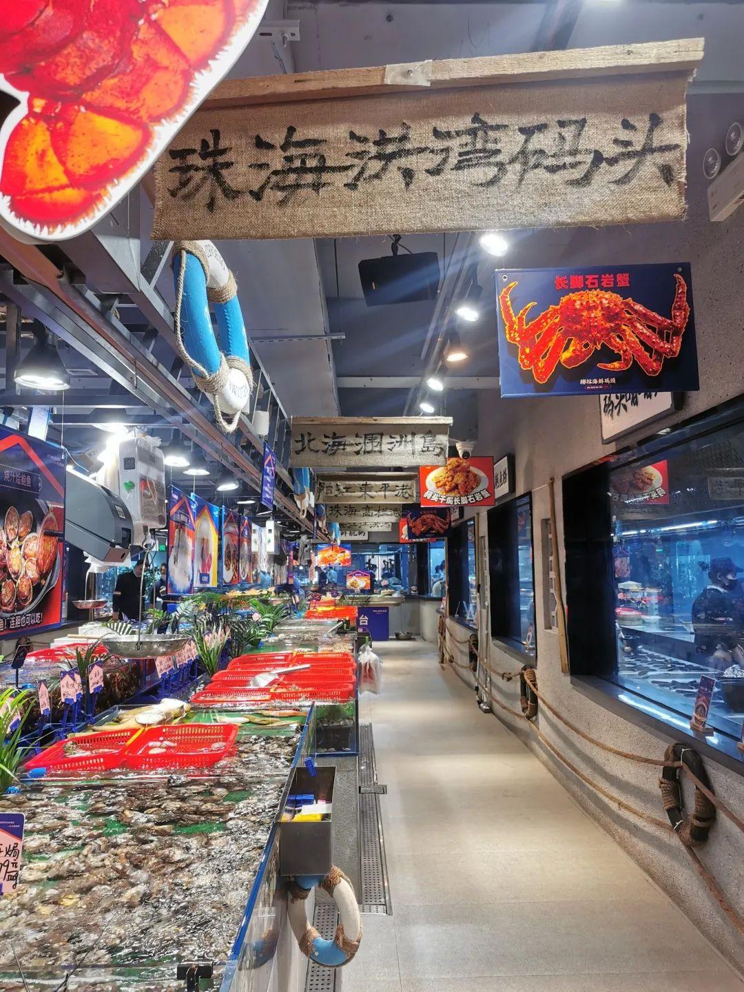 走进店内,便能看到由上百种生猛海鲜组成的海鲜长廊。来自深海的长脚石岩蟹、阳江的花虾、台山的生蚝、珠海的海仓鱼……所有时令海鲜,应有尽有。