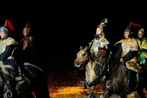 “声光电”的现代科技炫技之外,《烽烟三国》现场歌、舞、礼、乐、诗齐聚,武术、马术、杂技、特技等表演形式轮番上演,既保留古典文化的韵味,又满足现代观众对于视觉和感官效果的追求。