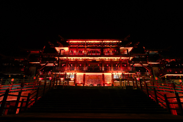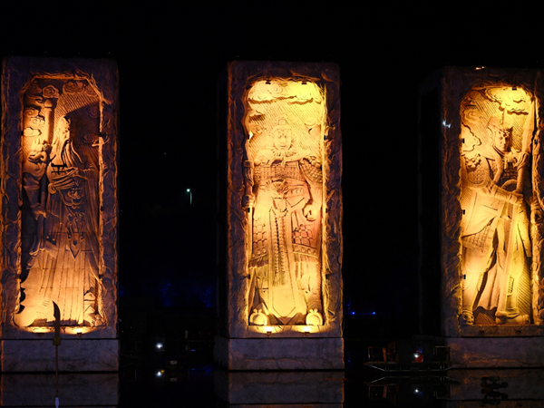当魏、蜀、吴汹涌袭来的金戈铁马跃过,英雄剑光划破夜空,当五座巨型“五虎上将”的雕像缄默地矗立于眼前,仿佛五枚烙上“礼、义、仁、智、信”的巨型篆刻深深地印刻历史与我们的胸膛。