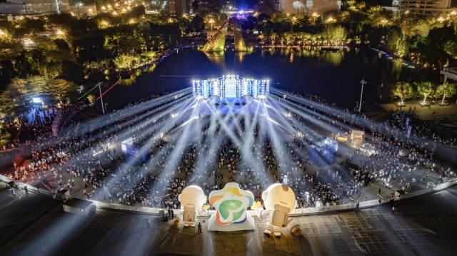 “本次灯光节以‘科创黄埔,光绘未来’为主题,深度契合了黄埔区作为科技创新前沿阵地的定位。”黄埔区住房和城乡建设局市政科科长王国栋介绍道,今年灯光节将科技元素与城市特色相融合,通过呈现科技感十足的演出装置和360度环湖水舞灯光秀,展现黄埔区科技创新的蓬勃活力和未来城市的智慧图景。