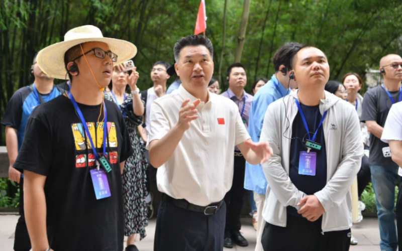 “大足石刻是一本教科书,是一册连环画,是一个有温度、有价值的美的存在……在大足石刻中,你能够感受到文化的流淌、人性的光芒、政德的力量。”现场,大足区委副书记罗晓春当起“导游”,带领大家在悠悠山谷中倾听石窟里流淌着的历史的声音。