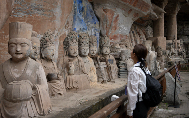 据了解,大足石刻始建于初唐,至两宋达到鼎盛。其5万余尊造像代表了公元9世纪至13世纪世界石窟艺术的最高水平,被誉为世界石窟艺术史上最后的丰碑。1999年,大足石刻被列入《世界遗产名录》。