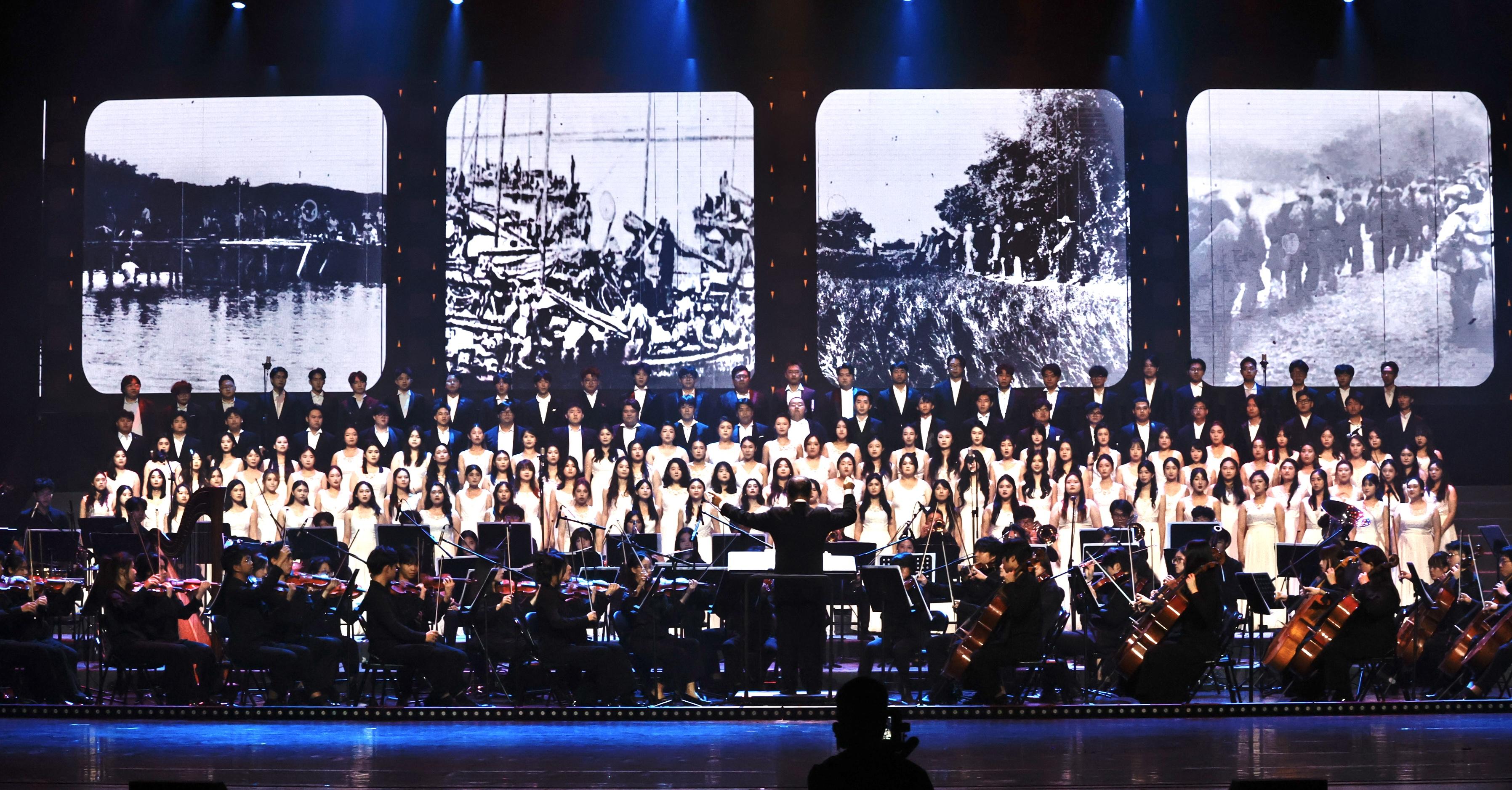 音乐会分为《战歌·救亡》《黄河·怒吼》《和平·珍爱》三大篇章,打破传统演出形式,深度融合震撼人心的抗战故事、经典音乐作品以及多媒体影像,打造了一场主题鲜明、形式新颖的沉浸式综合视听盛宴。