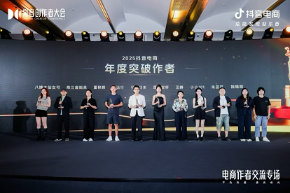 (2025抖音创作者大会颁奖典礼 · 年度突破作者马帅领奖 左起第五位)