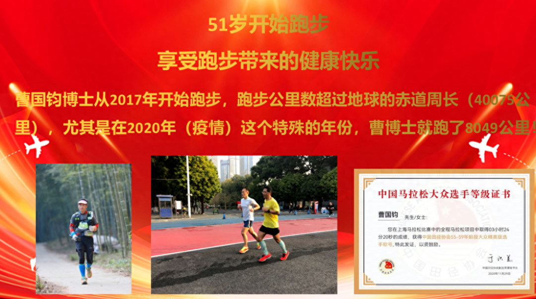 提及曹国钧博士,“坚持”与“突破”是绕不开的关键词,这一点在他的跑步历程中体现得淋漓尽致。2023年8月,一个令人惊叹的数字诞生——曹国钧博士六年来的跑步总公里数达到了40610公里,这一数字不仅是时间与汗水的累积,更超越了地球赤道40075公里的周长!
