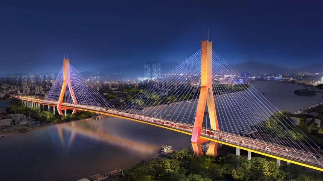 鹤洞大桥照明系统改造工程以“鹤舞珠江、光溯千年”为设计主题,巧妙融合现代照明技术与传统美学理念。在灯光设计上,工程采用了先进的智能控制系统,具备呈现多种色彩效果的能力,并巧妙融入岭南文化元素,桥体光色变化灵感汲取自珠江潮汐与岭南水乡的温润意境。