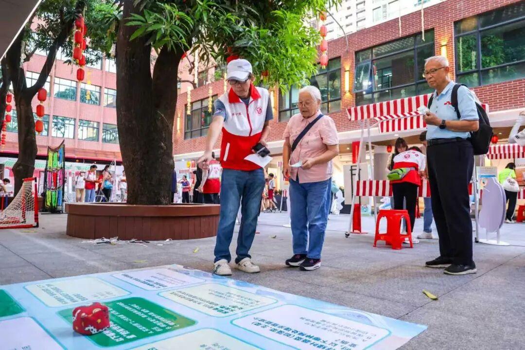 “十五运”互动区深受群众喜爱,市民可参与趣味跨栏、足球破门、飞盘挑战、毽子体验、木射游戏等,在“跑投踢射”中尽情享受运动乐趣。现场十五运体育造型公仔立牌憨态可掬、形态各异,以可爱形象吸引市民参与打卡互动。