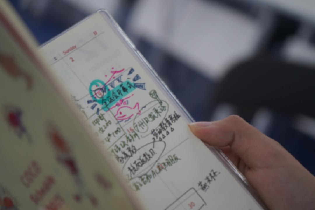 王子玟向记者展示了自己的志愿者全运会日程表,所有和全运会相关的信息都被天蓝色记号笔着重圈出。志愿者选拔要经历层层筛选,从笔试、面试到心理测试、培训测试,关关不能马虎,最终她从众多报名者中脱颖而出,成为了开幕式内场中的一名“小海豚”。