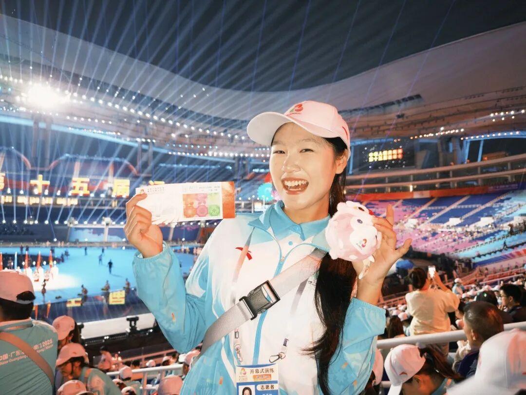 从1月的冬末到11月的秋日,从华南农业大学的校门口到奥体中心的场馆,对于大学生王子玟来说,这是一段长达10个月、贯穿整个2025年四季的独特旅程。开幕式结束那天的零点,她在朋友圈发文,将2025年这段特殊的经历,比喻成“写了一封很久很久的信”。