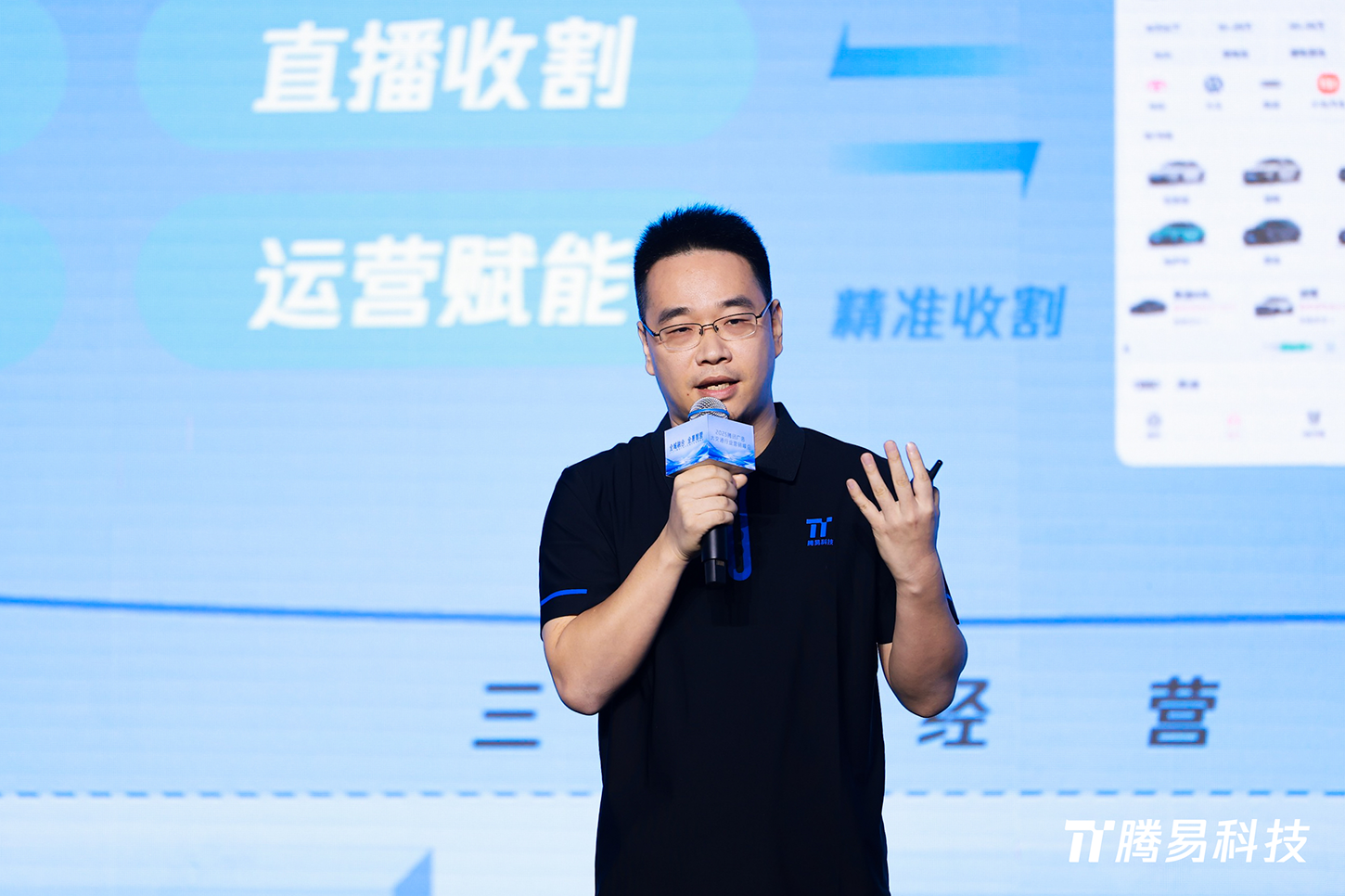 腾易科技副总裁毛单则围绕《矩阵“经营”,品效融合》展开深度解析,重点介绍了在视频号场景下,主机厂、经销商、达人三大经营主体如何通过“官播、店播、达播”协同,构建“流量—线索—销量”的高效转化体系。他透露,腾易科技推出的“投播一体”服务模式,正帮助主机厂以更低试错成本快速布局官号直播;厂店直播产品已覆盖超3000家门店,占行业活跃门店近10%,店均月消耗稳定在万元以上,初步实现了自然流与商业流的高效协同。明年,腾易科技还将推出中心化小程序阵地,作为品牌可持续经营的“线上车商城”,实现7×24小时在线获客与转化。