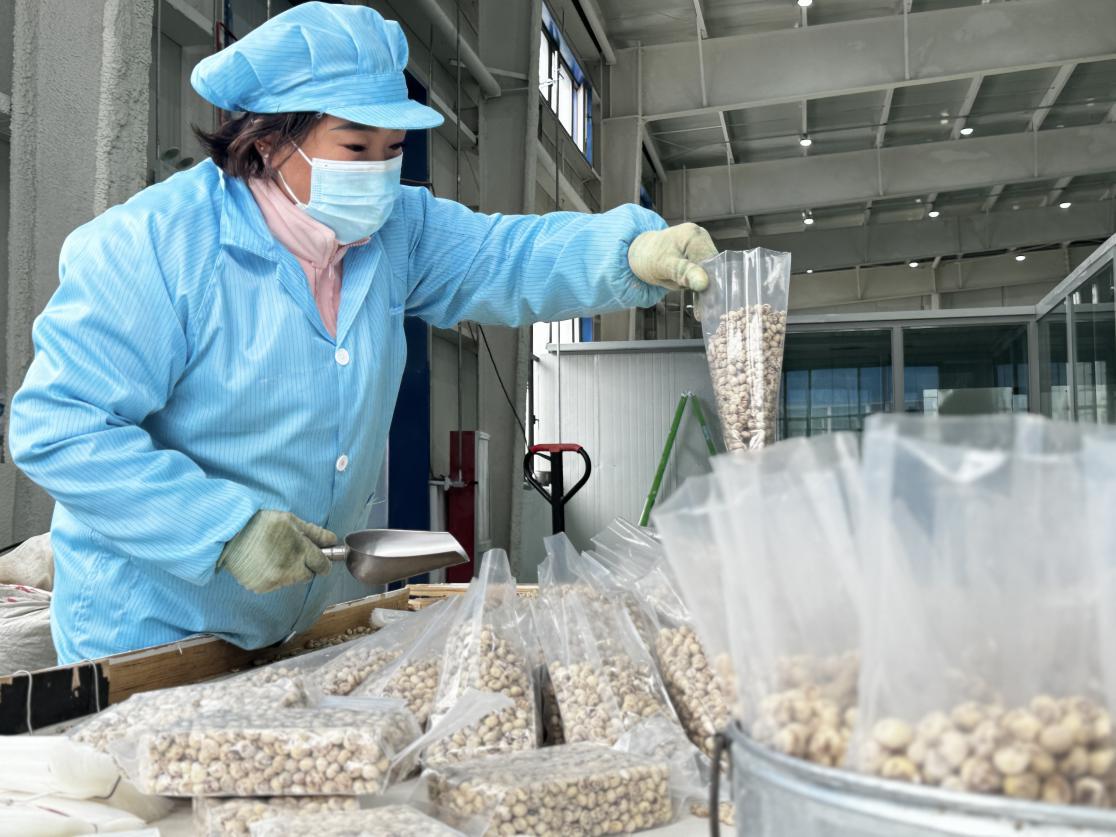 这份信心,源自当地推动油莎豆全产业链发展的坚实步伐。为推动单一的种植业向加工、销售全产业链发展,广东援疆着力将团场资源优势转化为产业优势,投入资金4000万元建设油莎豆现代农业产业园,实现油莎豆清洗、筛选、烘干、存储、包装的全产业链生产。据广东援疆干部、五十四团党委常委吴兴剑介绍,园区已引进7家企业,开发出10余种深加工产品,预计年内产值可达1.5亿元,新增就业岗位200余个,带动平均增收4.5万元。