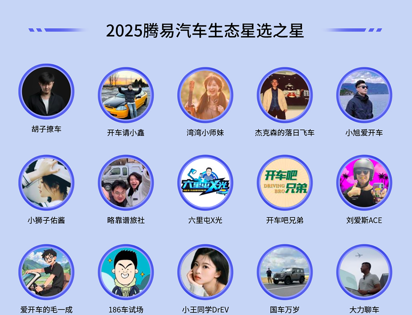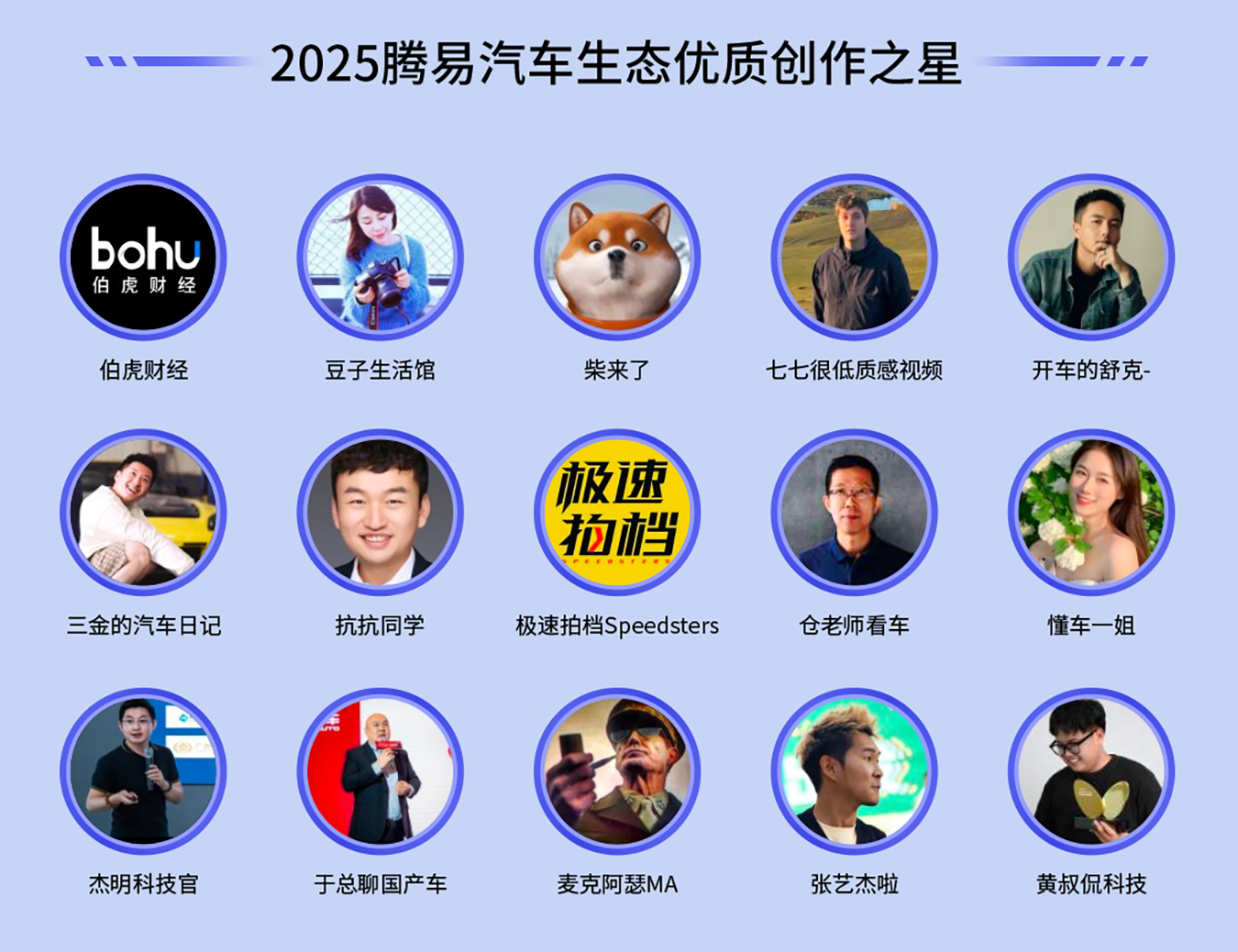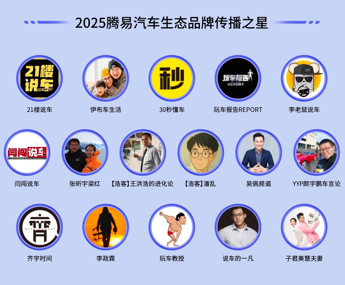 十五位创作者获“2025腾易汽车生态星选之星”,旨在表彰在商业变现与内容质量方面实现双优的创作者,他们是生态中兼具市场价值与内容口碑的中坚力量。
