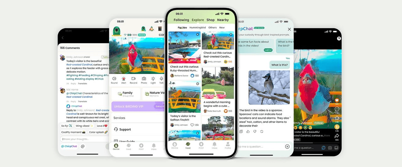 “当时北美市场上,大多数的智能喂鸟器就是在安防摄像机外面套一个粮仓,尽管摄像机可以拍到鸟类进食的画面,但App只是简单的控制器。这远远不能满足用户的需求。”朱润民说道。对观鸟爱好者而言,兴趣消费从来不止于“拥有产品”,更在于“融入圈层”—— 他们在享受观鸟乐趣的同时,更渴望与同好分享见闻,而Facebook和Reddit上活跃的观鸟群组,早已印证了垂直社区的旺盛需求。所以COOLFLY要打造“观鸟界B站”,给美国用户带来中式互联网震撼。