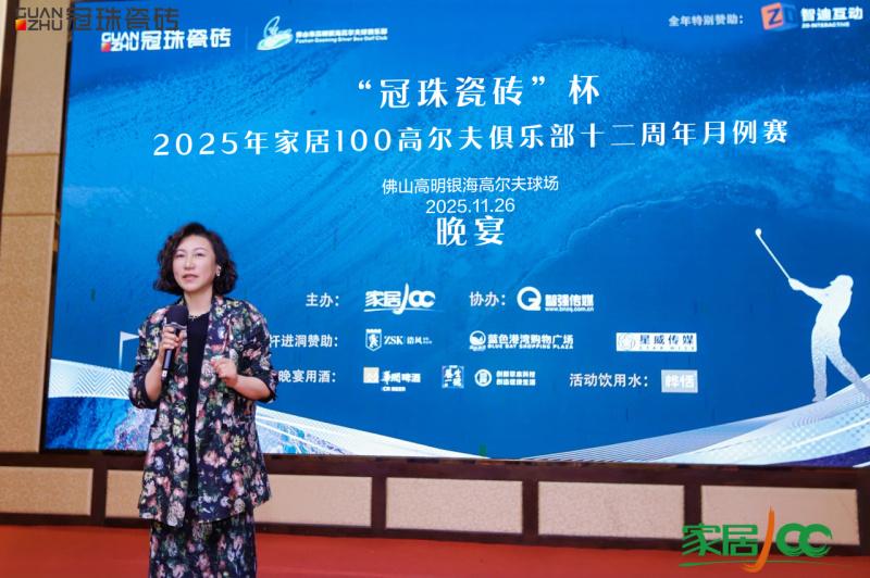 11月26日,“冠珠瓷砖杯”2025年家居100高尔夫俱乐部十二周年月例赛在佛山高明银海高尔夫球场盛大开启。此次赛事由家居100高尔夫俱乐部主办,冠珠瓷砖冠名赞助,以期共同搭建交流平台,以球会友,以赛促商,倡导绿色美好健康生活。新明珠集团董事长兼总裁叶德林,家居100高尔夫俱乐部执行会长、智强传媒集团董事长陈京生,冠珠瓷砖品牌总经理潘瀚出席了本次活动。