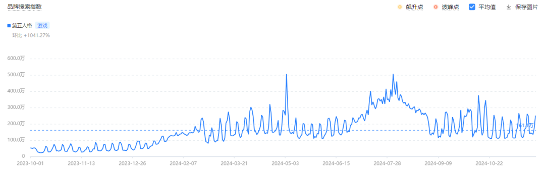 2024年,《第五人格》迎来新一轮爆发,其催化剂正是来自玩家的大量二创破圈,并逐步沉淀为游戏独有的玩家文化。据巨量指数显示,游戏品牌搜索指数在2024年显著飙升,与收入回暖形成呼应。
