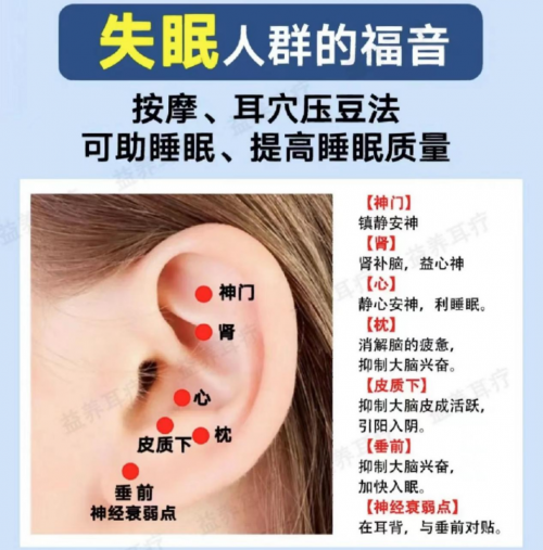 耳朵是人体的"缩小版地图",耳穴压豆通过王不留行籽贴压耳穴,持续刺激心、神门、皮质下等反射区。操作简单:清洁耳朵后,用胶布固定籽粒,每天自行按压3-5次,每次5分钟,酸胀痛感为佳。