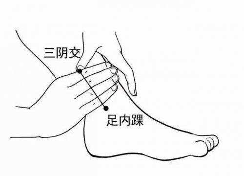 三阴交穴:在内踝尖上 3 寸,是肝脾肾三经交汇点。拇指推揉三阴交,能调节肝郁、脾虚、肾亏,尤其适合更年期女性的潮热失眠。