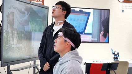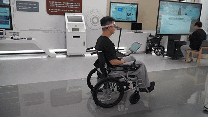 使用者通过“意念”控制脑机AI电动轮椅转向