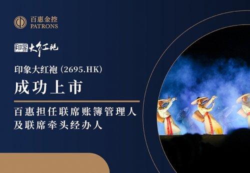 12月22日上午,印象大红袍股份有限公司(以下简称“印象大红袍”),股票代码2695.HK,正式登陆香港联交所主板,每股定价为3.60港元,百惠金控团队担任联席账簿管理人及联席牵头经办人。本次IPO上市公开发售部分,获超额认购约3397倍。