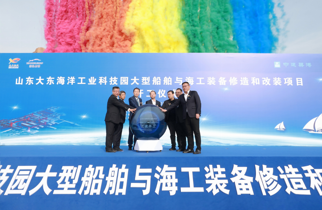 12月20日,中建筑港承建的山东大东海洋工业科技园大型船舶与海工装备修造和改装项目举行开工仪式。